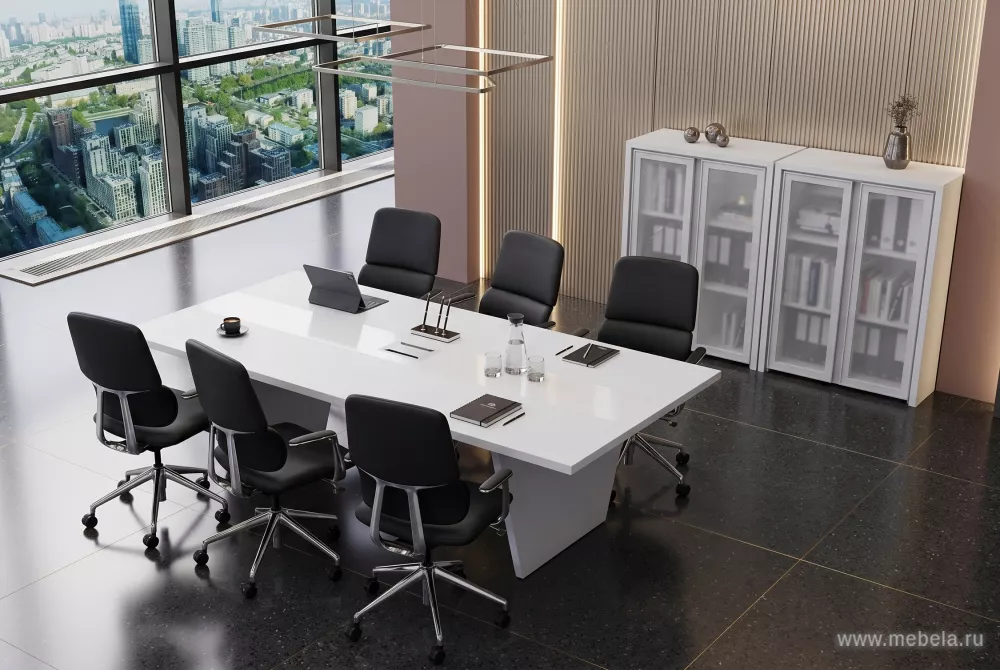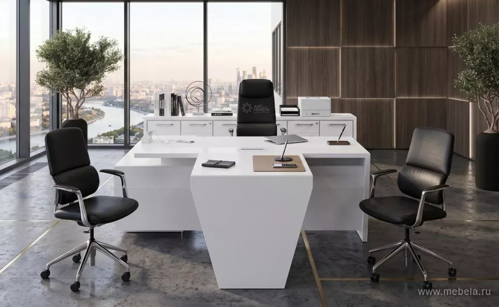 Кабинет руководителя - это визитная карточка компании, поэтому он должен подчеркивать строгость и создавать положительное впечатление. Для его обустройства отлично подойдет стильная и лаконичная мебель серии Корнер в цвете белый бриллиант, которая отлично вписывается в офисный интерьер.