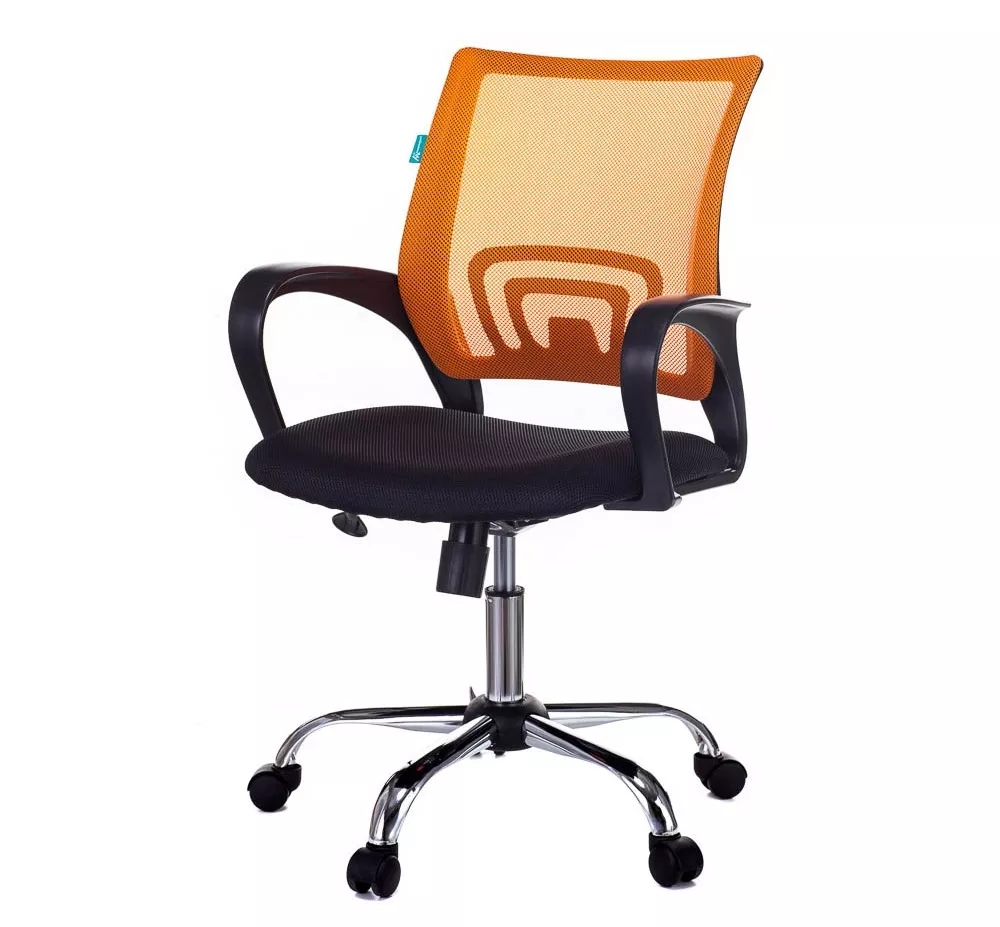 Хромированные элементы кресла выглядят стильно в любом интерьере. Для обивки сидения использована ткань, устойчивая к растяжению, истиранию. В лаконичный дизайн изделия прекрасно вписываются пластиковые подлокотники, которые будут очень удобными для владельца кресла. Хромированная пятилучевая крестовина с поворотными колесиками делает
