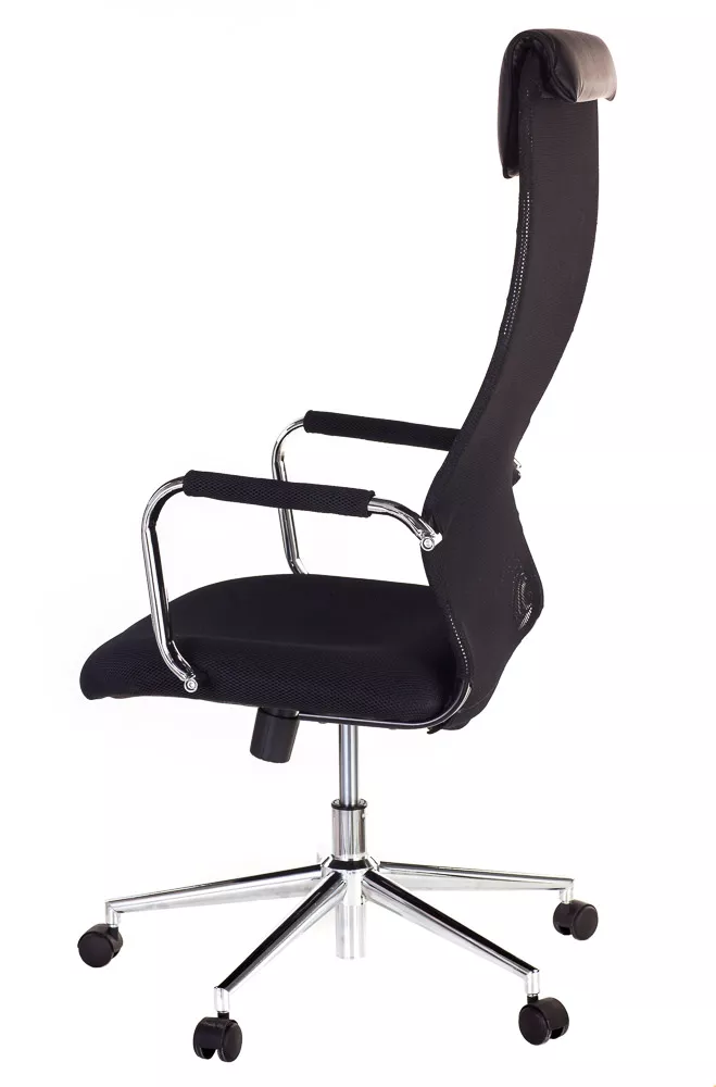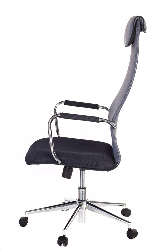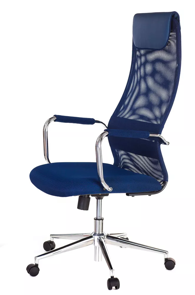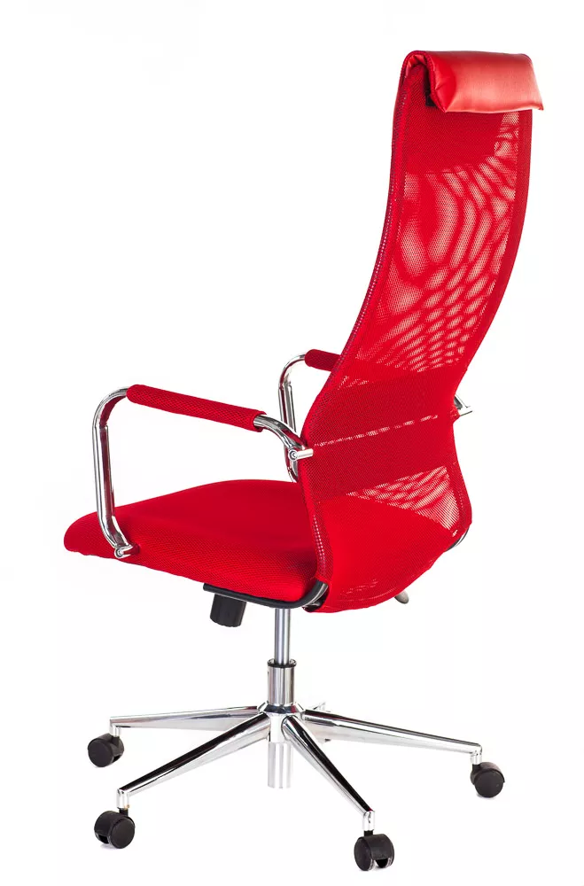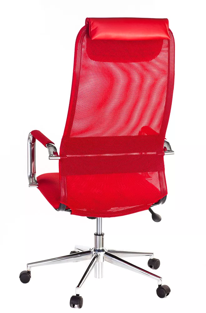 Изящное кресло с необычным изгибом спинки. Вытянутая задняя поверхность с подголовником и горизонтальной полоской по центру выглядит невероятно элегантно. Кресло выполнено из сетчатой ткани, экокожи, сетки и пластика. Представлено в четырех цветах: черном, сером, красном и синем. Все четыре модели выглядят ярко.