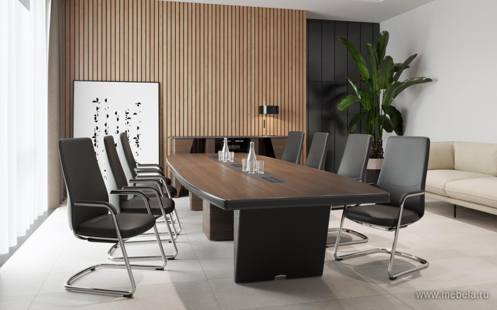 Потрясающий по внешнему виду и качеству материалов стол Ньютон станет отличной презентацией зала переговоров, солидного имиджа и успешности компании. Современный лаконичный стиль модели подчеркнут благородными материалами - причудливыми древесными текстурами природного дуба, кожаной вставкой и металлом.
